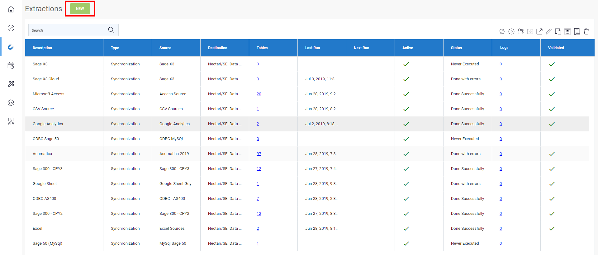 - Synchronization: consists of replicating tables from a source connection to the tables of a destination connection.