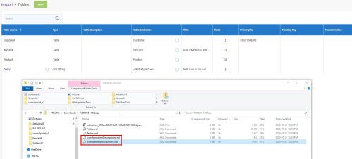 If the Extraction contains Transformations, they will also be included in the .zip file when importing (refer to Import an Extraction for more details).