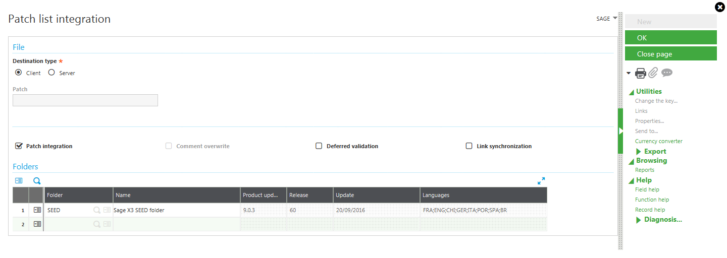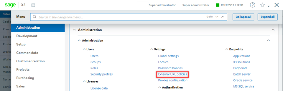 1. Allez dans les Sage X3paramètres : Setup > Paramètres généraux > Valeurs des paramètres > SUP