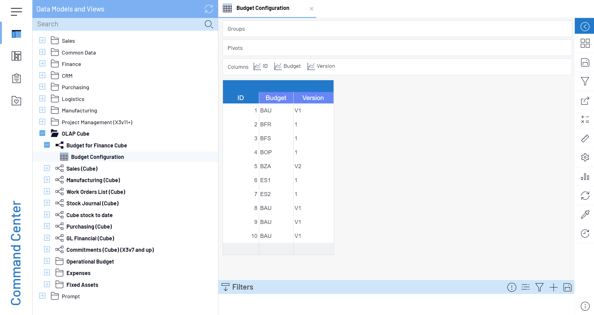 2. Dans le Gestionnaire OLAP, sélectionnez et chargez X3 Financial Cube.