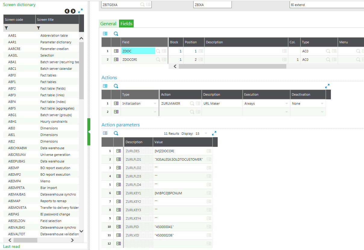 2. Dans l'onglet d'écran, sous l'onglet, ajoutez une ligne dans l'écran ZBITGEXA.