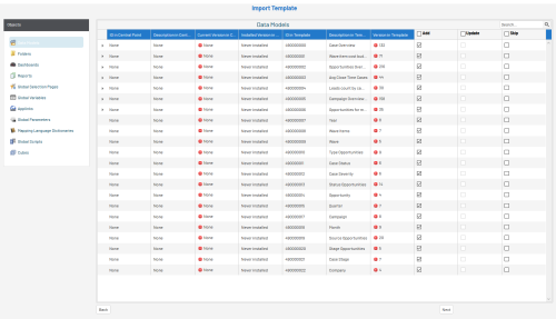 ImportantSi vous cochez la case Mettre à jour, il écrasera les objets Nectari existants associés à ce modèle de données ou connectés aux autres (dépendances). Veuillez noter que si des personnalisations ont été faites, elles seront perdues.