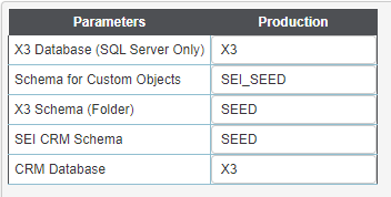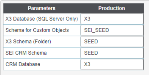 - Où NEC_FOLDER (remplacez FOLDER par le nom du dossier) est le schéma utilisé dans la Base de Données ERP du même environnement.