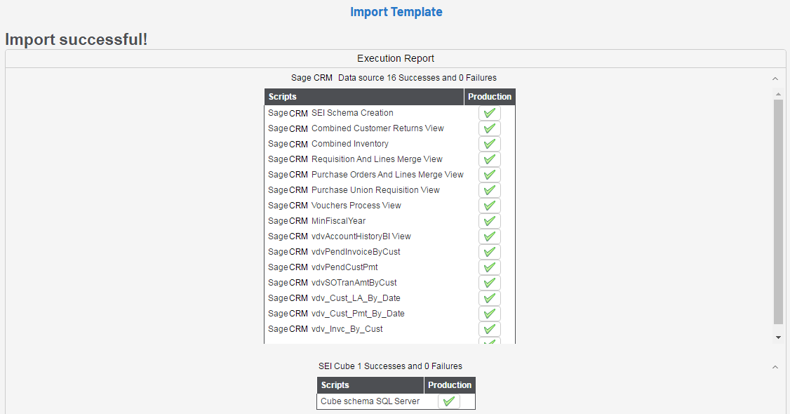 - Après l'importation, un Rapport d'Exécution sera produit, comme indiqué ci-dessous.Note
