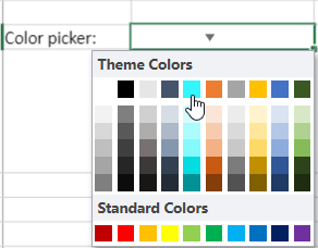 Color Picker: The color picker drop-down allows you to choose a specific color to populate the cell value with the hex code of the chosen color.
