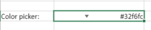 The hexadecimal value of the color is then displayed in the cell when selected.