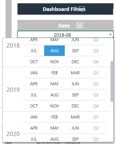 Month Picker: The month picker drop-down allows you to configure a specific month in a year to populate the evaluated result in the cell.