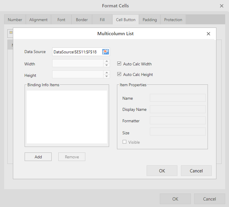 | UseButtonStyle | Select this option to give the cell a button look. |