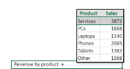 In our example, we added a caption (Revenue by product).