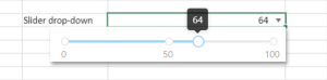Slider: The slider drop-down allows you to add a dynamic range slider in a cell that populates the current value in the cell.