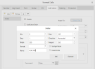 The Format Cells dialog box opens with the Cell Button tab selected. All drop-down features use the same parameters. Some drop-downs use additional parameters. The other tabs provide the standard formatting parameters.
