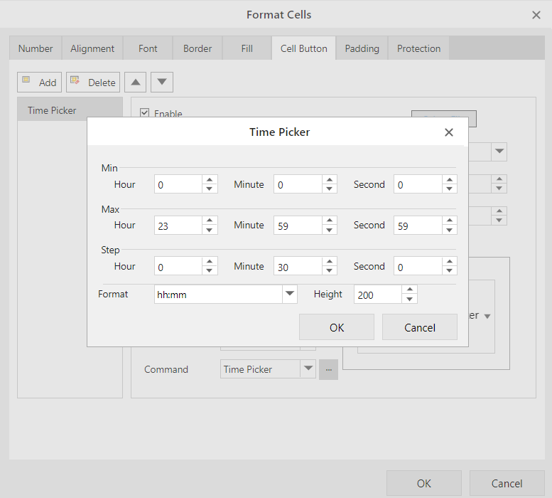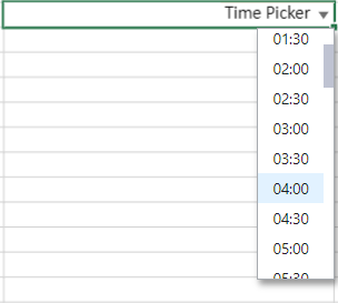 Time Picker: The time picker drop-down allows you to configure a specific time to populate the evaluated result in the cell.