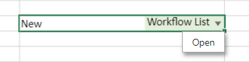 Workflow List: The workflow list drop-down allows you to select a workflow item easily and quickly to populate the chosen value in the cell.