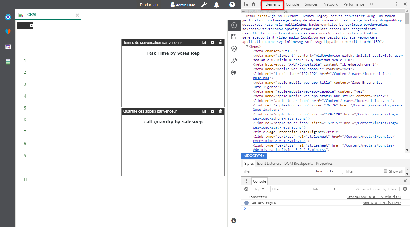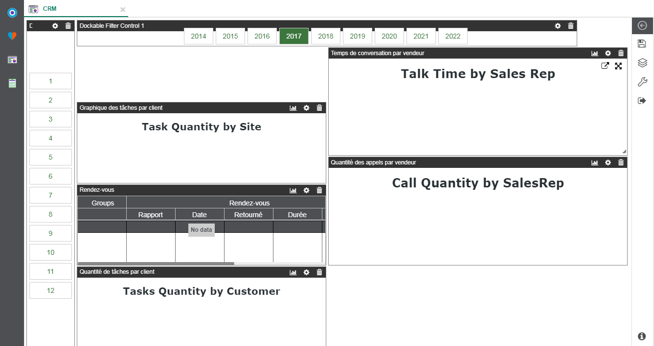 Dans la plupart des cas, il suffit de repositionner les éléments du tableau de bord à l'emplacement souhaité. Dans d'autres cas, il est impossible pour Nectari de placer correctement les éléments sur la grille et certains éléments deviennent invisibles (hors champ).