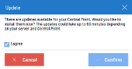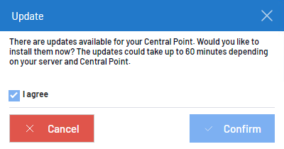 Un message s'affiche lorsque vous vous connectez au Client Web, indiquant que le Central Point n'est plus à jour (comme affiché à l'image ci-dessous).
