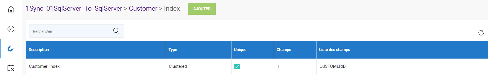 À partir de la version 2021 R2.1, DataSync vous permet de gérer la création, la mise à jour et la suppression des index dans la table de destination en fonction de vos extractions. Les index sont automatiquement créés lors de l'extraction des tables sources. Bien que les index améliorent les performances des sélections et des jointures, ils prennent de l'espace supplémentaire et peuvent ralentir les performances des insertions, des mises à jour et des suppressions de la base de données.