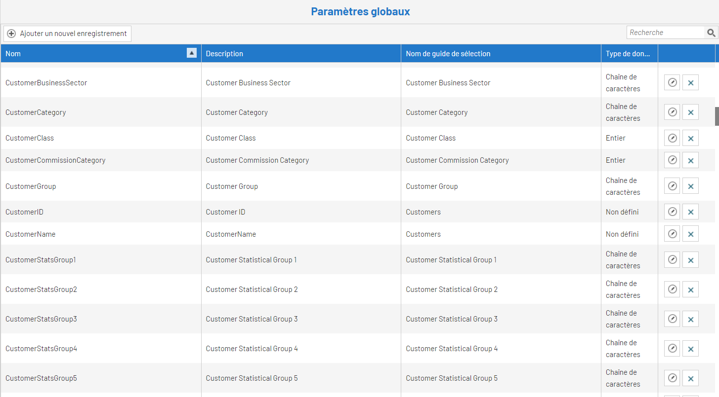 Nom : Le nom du paramètre doit être unique et ne doit contenir aucun espace.