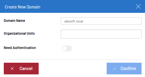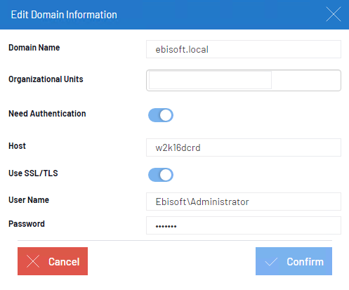 - Saisissez le nom de domaine et les unités organisationnelles (si elles ont été définies dans votre Active Directory).
