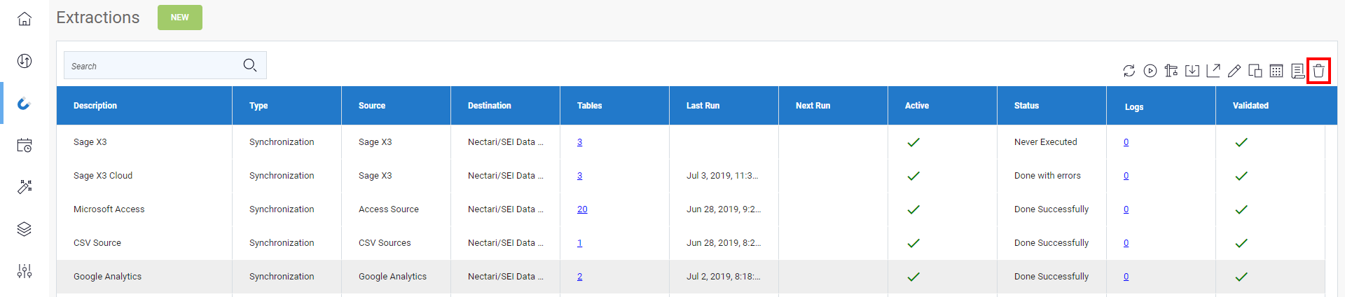 - Cliquez sur l'icône poubelle située dans le coin supérieur droit.