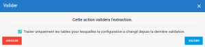 • Traiter uniquement les tables pour lesquelles la configuration a changé depuis la dernière validation : Cette option est sélectionnée par défaut. Elle ne va modifier que les objets qui ont changé.