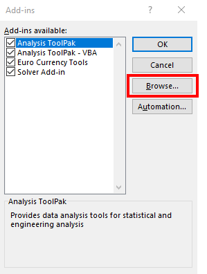 3. Dans la fenêtre Compléments, cliquez sur Parcourir...