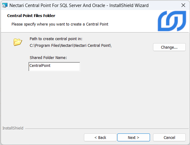 Pour installer le Central Point de Nectari pour SQL Server et Oracle, utilisez le paquet d'installation Nectari Central Point For SQL Server and Oracle.exe sur le serveur dans lequel le répertoire du Central Point doit se trouver.
