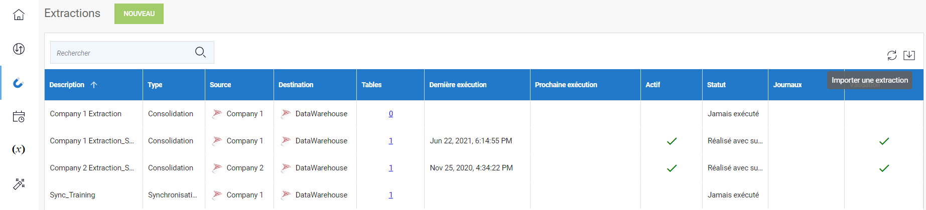 Après avoir créé et validé vos extractions, vous pouvez les exécuter :