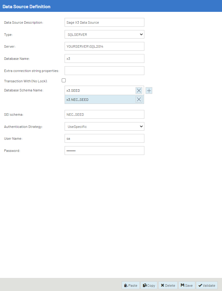 Description de la source de données Sage X3 Data Source