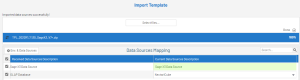 3. Dans l'écran Mappage des sources de données, associez les sources de données (ERP) listées dans la colonne Description des sources de données reçues (celles du modèle) aux sources de données que vous avez définies précédemment dans le Central Point (listées dans la colonne Description des sources de données actuelles).