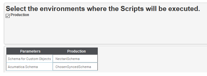 1. Sélectionnez l'environnement dans lequel les scripts seront exécutés et cliquez sur Suivant.