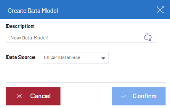 - Dans le champ Description, entrez le nom du modèle de données et sélectionnez la source de données associée dans la liste déroulante (voir Environnements et sources de données pour plus de détails).Note