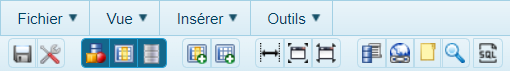 Voici le menu du Concepteur de modèles de données ; placez votre curseur sur les icônes pour voir leur description et aller à la rubrique concernée.