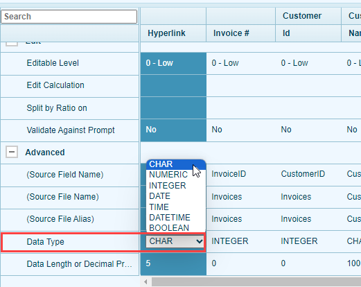 Dans la section Avancé > Type de données, sélectionnez CHAR et cliquez sur OK.
