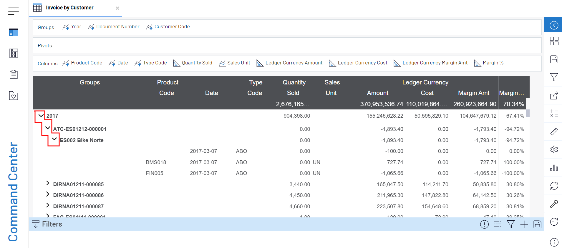 Par défaut, le groupe Ligne de total est le premier niveau de groupe développé. Cela signifie que s'il y a trois niveaux de groupes développés, il y aura quatre niveaux d'indentation plutôt que trois.