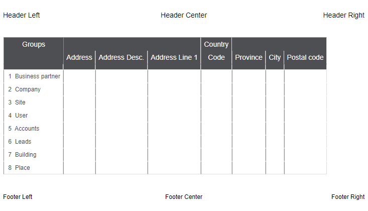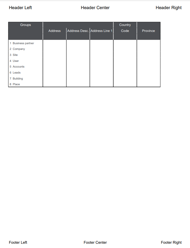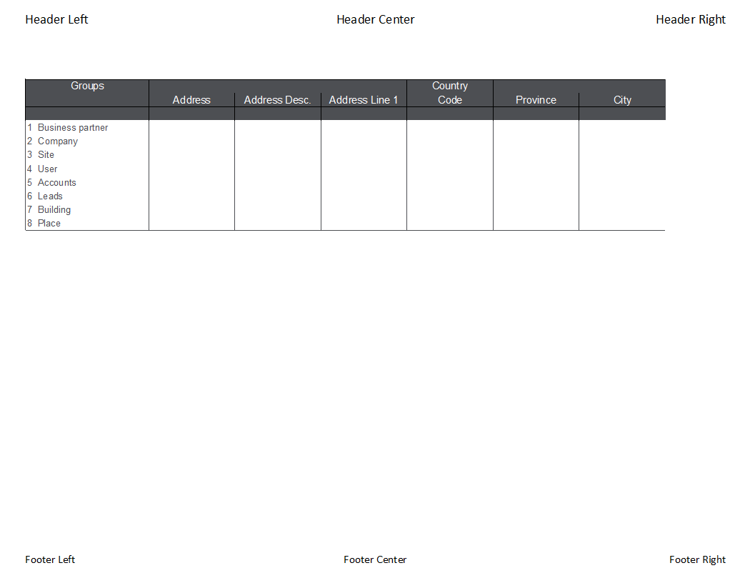 Le format de fichier .CSV n'est pas compatible avec la fonctionnalité En-tête / Pied de page de Nectari. Par conséquent, les en-têtes et pieds de page ne s'afficheront pas sur les exports au format .CSV.