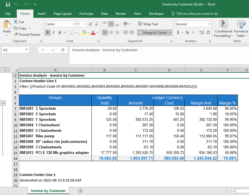 Les exports de format XLSX ou XLS sont limitées à 255 caractères pour les en-têtes et les pieds de page. Par conséquent, les trois sections d'en-tête ou de pied de page (c'est-à-dire la gauche, le centre et la droite) combinées doivent comporter moins de 255 caractères au total. Si votre en-tête ou votre pied de page comporte plus de 255 caractères combinés, le texte sera tronqué après les 252 premiers caractères dans les exports XLSX et XLS.