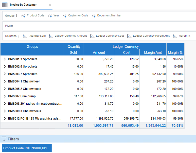 Cliquez sur le bouton de bascule pour ajouter les filtres présents dans la vue, le tableau de bord ou le rapport dans l'entête. Note: Les filtres apparaissent toujours en anglais. |