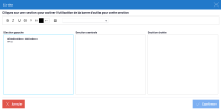 La fenêtre contextuelle de Personnalisation de l'en-tête ou du pied de page permet aux utilisateurs de créer et modifier les en-têtes ou pieds de page de leur export respectivement.