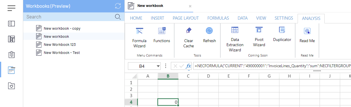 The Workbooks tab allows you to manage workbooks in the Web Interface directly instead of using the Excel Add-in.