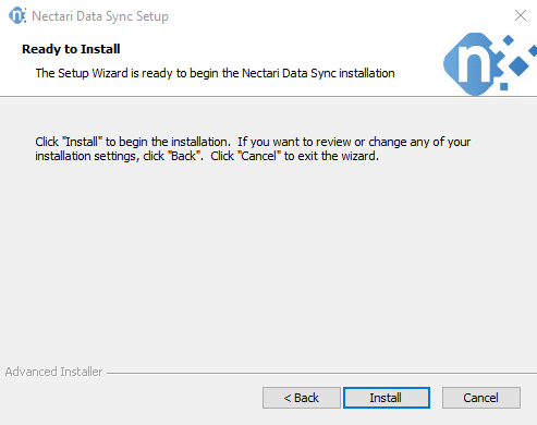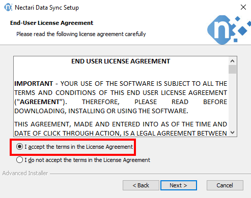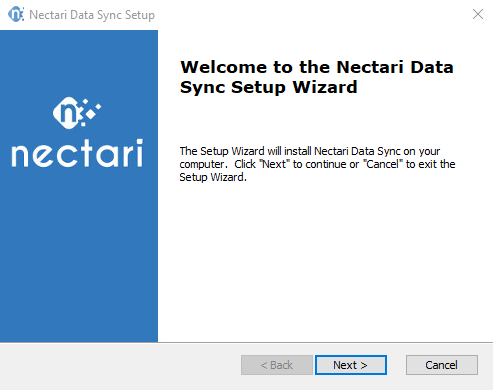 Exécuter l'application DataSync.exe de Nectari et cliquez sur Next.