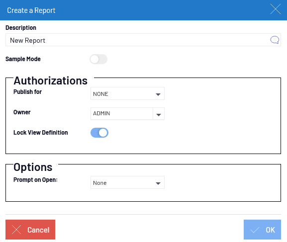 - In the Description field, write the applicable title for the report.