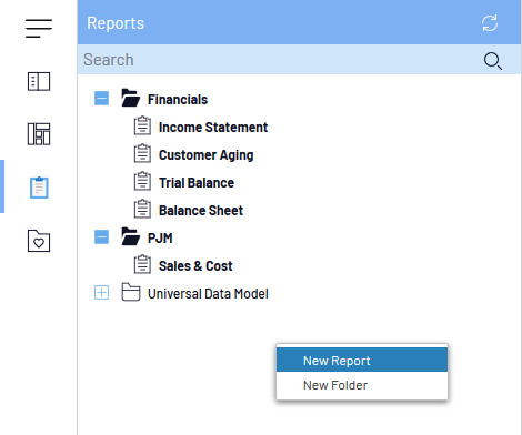 Right-click in an empty space in the Reports tab and select New Report.