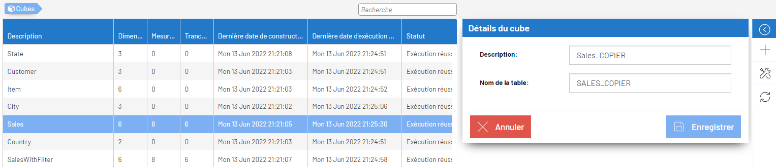 1. Dans la liste des Cubes, sélectionnez un cube.
