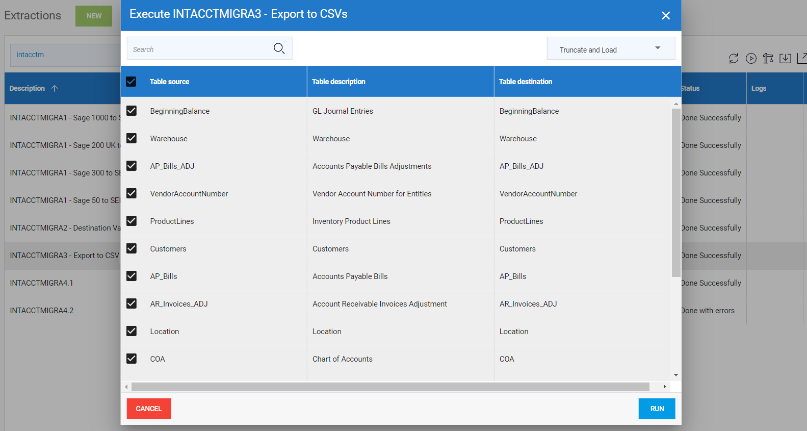 2. Exécutez le processus de Load to Respective Table tel que décrit dans Charger les données dans les tables.