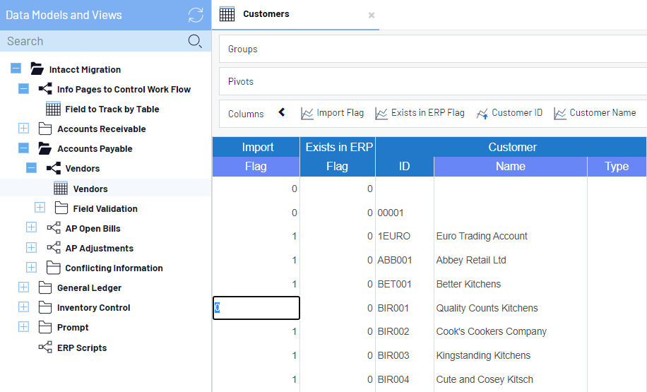 1. Dans la colonne Import Flag, entrez 0 pour exclure l'enregistrement. La valeur 1 garde l'enregistrement.