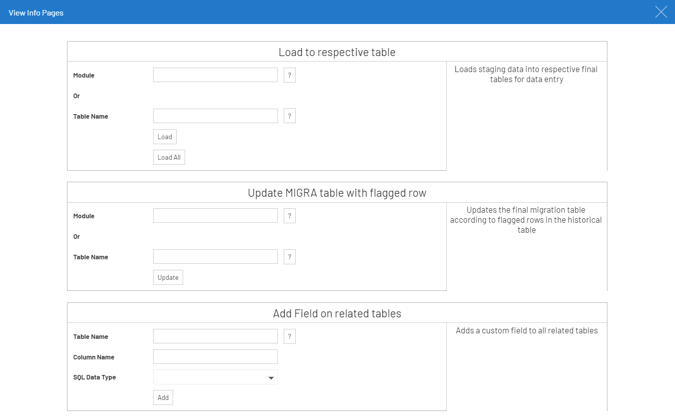 2. Dans la section Load to Respective Table, cliquez sur l'icône du guide de sélection et sélectionnez Module ou Table Name dans la liste.