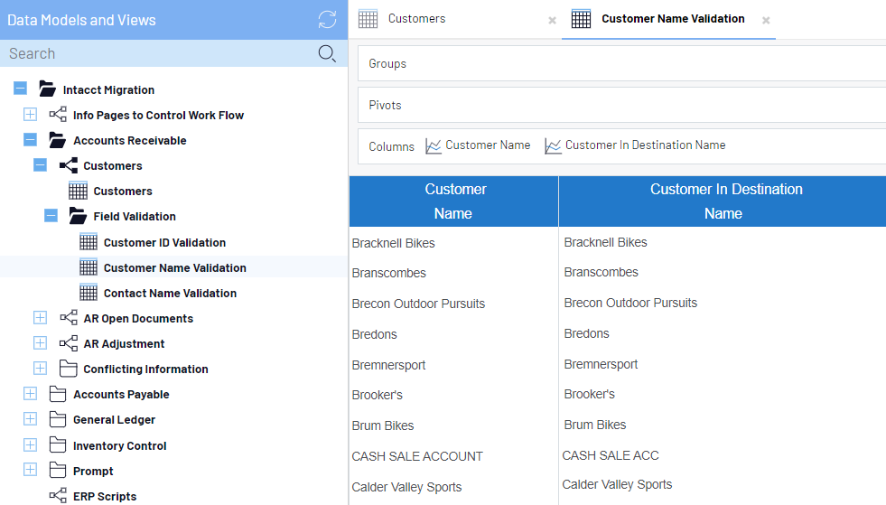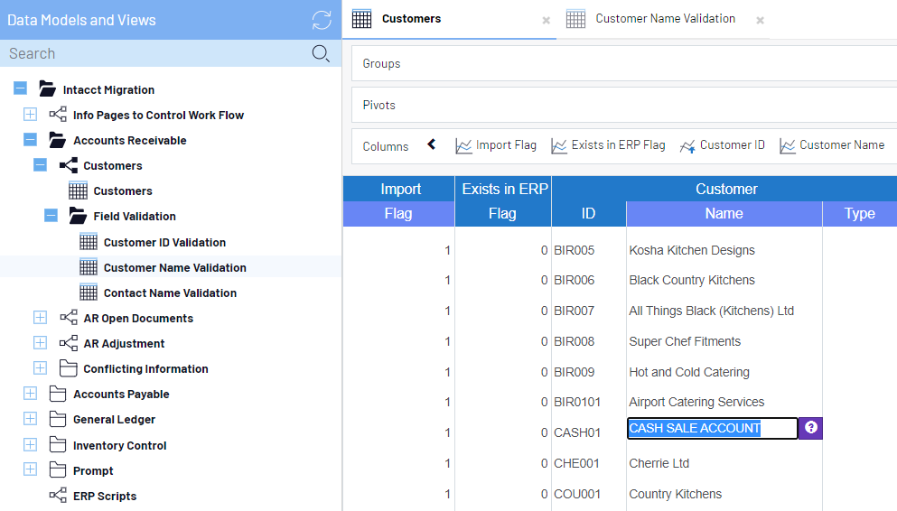 Dans notre exemple, nous avons ouvert feuille de calcul Customer Name Validation sous le modèle Customers.