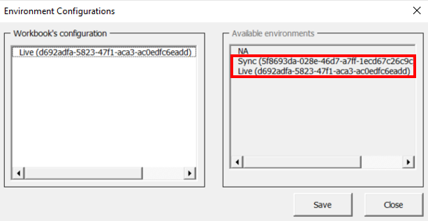 Follow the procedure described in Environment Configurations to select the Environment based on your configuration as indicated.