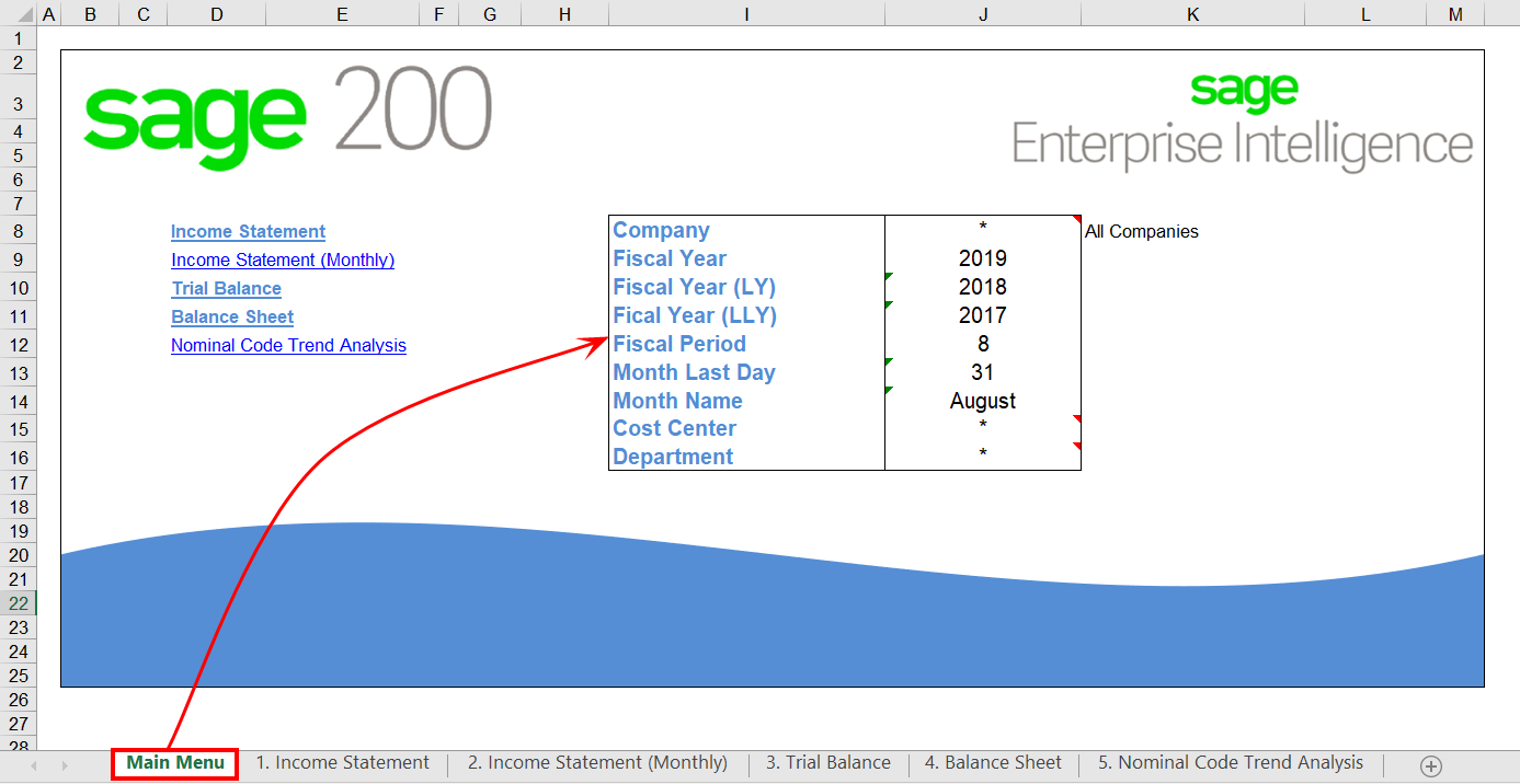 This section helps you configure Excel Add-in so it can be used with the Sage 200 UK template provided with the SEI Financials for Sage 200.xlsx file.