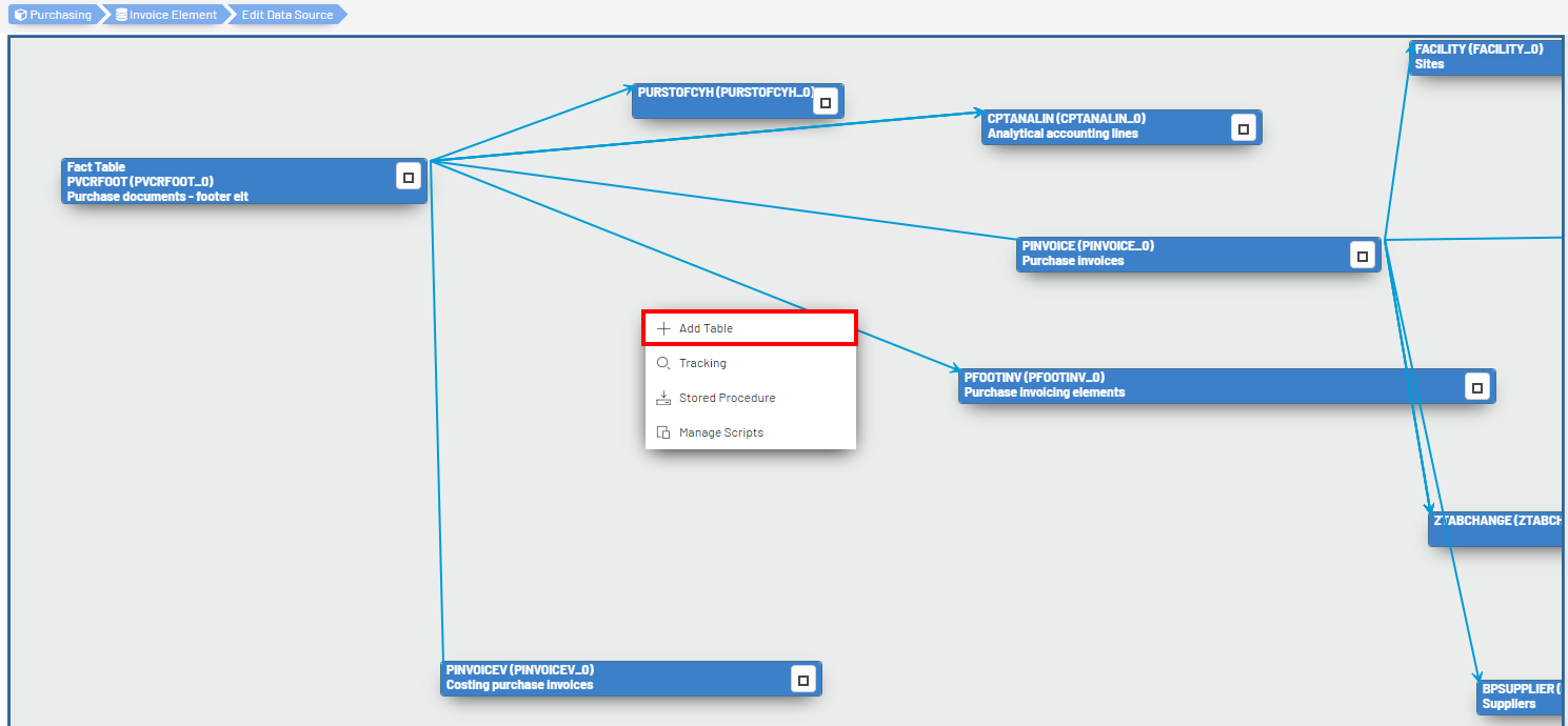 Définir comme Table de Faits : Changez la table sélectionnée en table de faits, toutes les jointures existantes seront redirigées correctement.